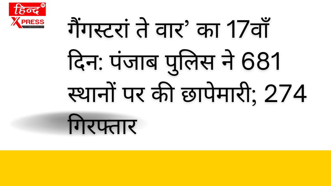 ‘गैंगस्टरां ते वार’ का 17वाँ दिन: पंजाब पुलिस ने 681 स्थानों पर की छापेमारी; 274 गिरफ्तार