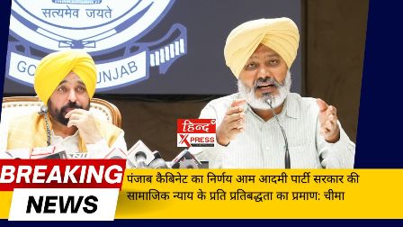 पंजाब कैबिनेट का निर्णय आम आदमी पार्टी सरकार की सामाजिक न्याय के प्रति प्रतिबद्धता का प्रमाण: चीमा