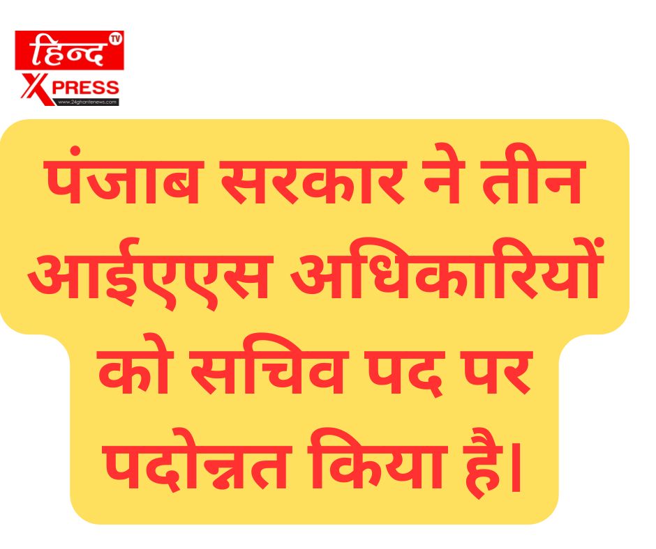 पंजाब सरकार ने तीन आईएएस अधिकारियों को सचिव पद पर पदोन्नत किया है।