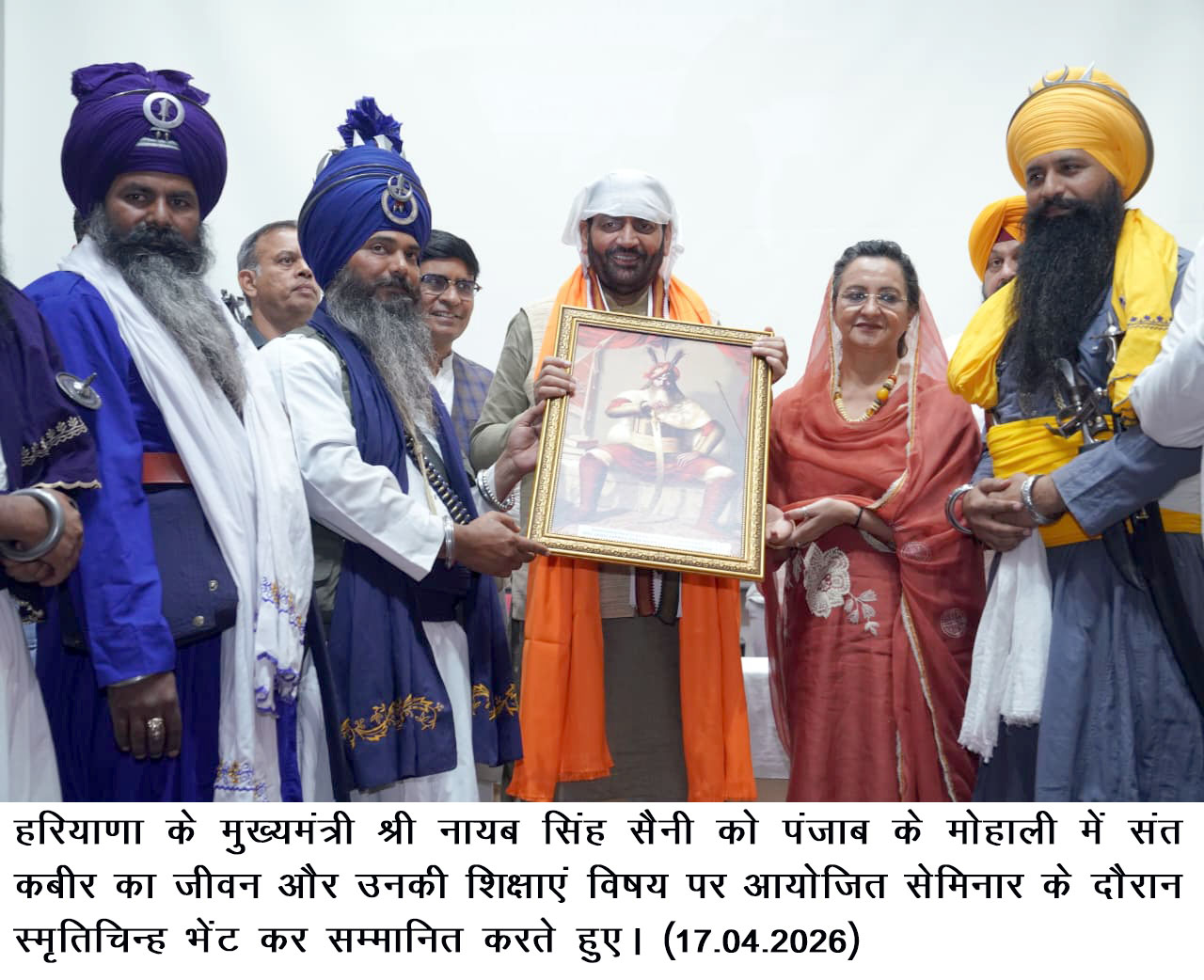 चंडीगढ़, 17 अप्रैल— हरियाणा के मुख्यमंत्री श्री नायब सिंह सैनी ने कहा कि संत शिरोमणि कबीर दास जी के विचार और शिक्षाएं आज के दौर में भी अत्यंत प्रासंगिक हैं। उन्होंने कहा कि कबीर जी ने 15वीं शताब्दी में समाज में व्याप्त धार्मिक कट्टरता, पाखंड और भेदभाव के विरुद्ध जो क्रांतिकारी आवाज उठाई थी, वह आज भी समाज को एकता, समरसता और विश्व बंधुत्व का मार्ग दिखाती है।