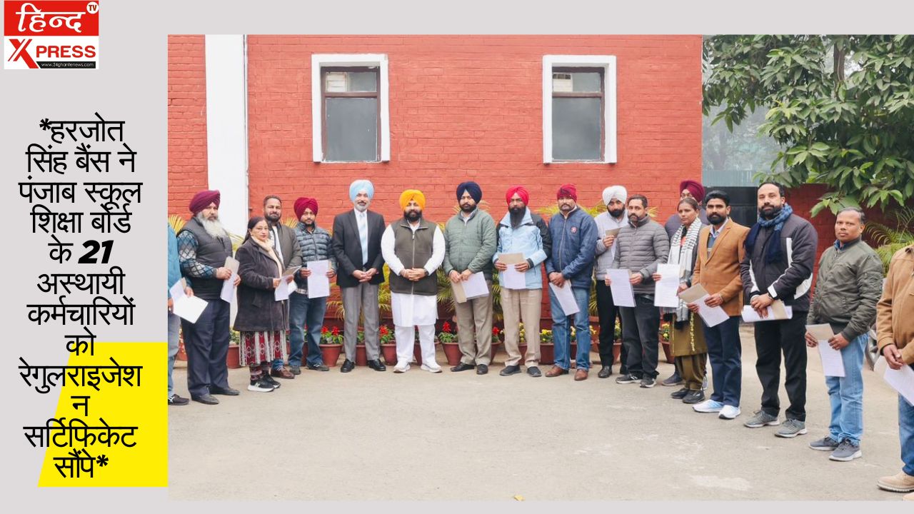 *हरजोत सिंह बैंस ने पंजाब स्कूल शिक्षा बोर्ड के 21 अस्थायी कर्मचारियों को रेगुलराइजेशन सर्टिफिकेट सौंपे*