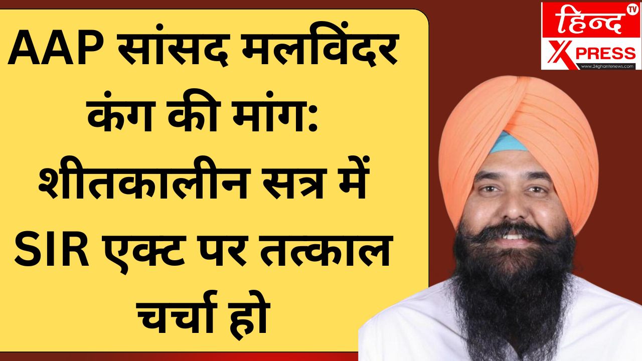 आम आदमी पार्टी के आनंदपुर साहिब से सांसद मलविंदर सिंह कंग ने संसद के शीतकालीन सत्र को बेहद महत्वपूर्ण बताते हुए कहा है कि इस दौरान राष्ट्रीय मुद्दों पर तुरंत चर्चा होनी चाहिए। उन्होंने स्पेशल इंटेंसिव रिवीजन (SIR) एक्ट को देश की संवैधानिक विश्वसनीयता से जुड़ा बड़ा मुद्दा बताया और कहा कि इसकी वजह से चुनाव आयोग जैसी संवैधानिक संस्थाओं में जनता का भरोसा कम हो रहा है।