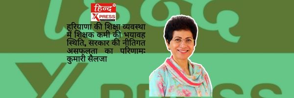 हरियाणा की शिक्षा व्यवस्था में शिक्षक कमी की भयावह स्थिति, सरकार की नीतिगत असफलता का परिणाम: कुमारी सैलजा