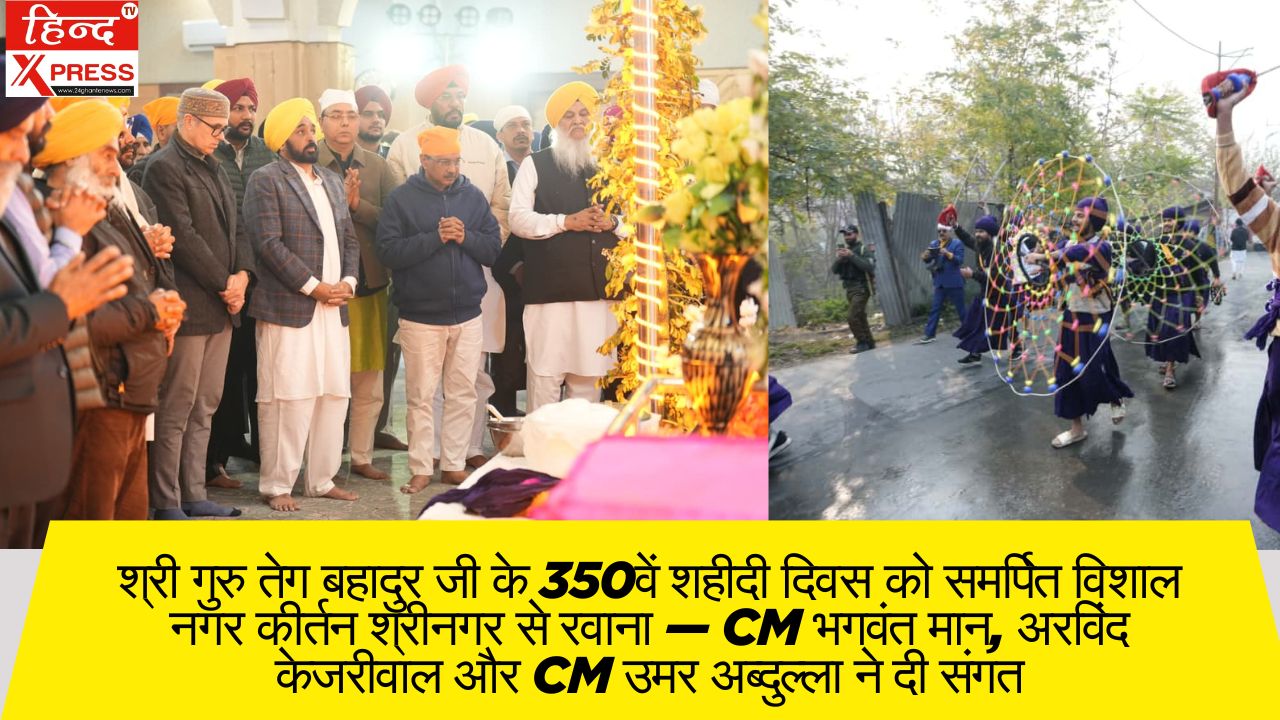 ऐतिहासिक गुरुद्वारा छठी पातशाही साहिब से श्री गुरु तेग बहादुर जी के 350वें शहीदी दिवस को समर्पित विशाल नगर कीर्तन आज भाव-भक्ति के माहौल में रवाना हुआ। इस पवित्र नगर कीर्तन को रवाना करने के मौके पर पंजाब के मुख्यमंत्री भगवंत सिंह मान, आम आदमी पार्टी के राष्ट्रीय संयोजक अरविंद केजरीवाल, और जम्मू-कश्मीर के मुख्यमंत्री उमर अब्दुल्ला ने संगत के साथ शिरकत की।