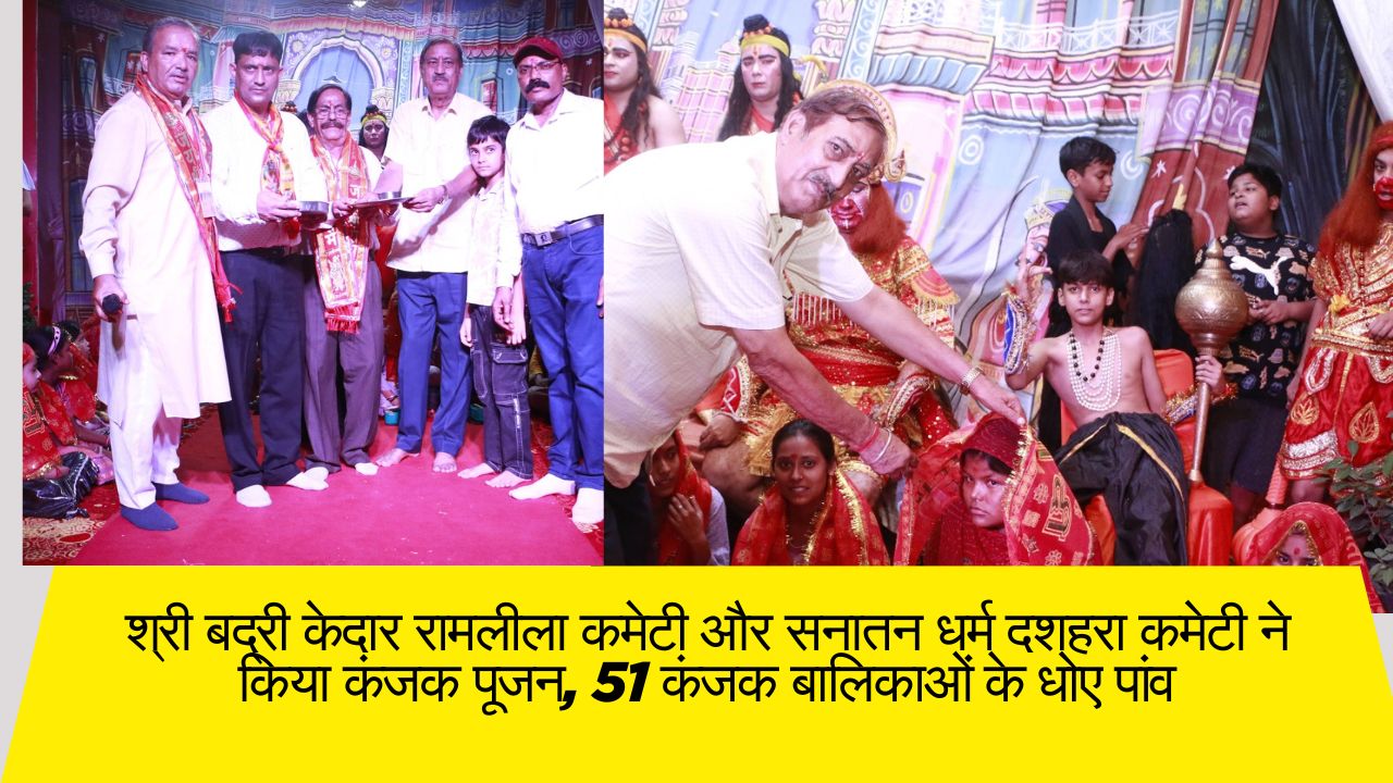 श्री बद्री केदार रामलीला कमेटी और सनातन धर्म दशहरा कमेटी ने किया कंजक पूजन, 51 कंजक बालिकाओं के धोए पांव