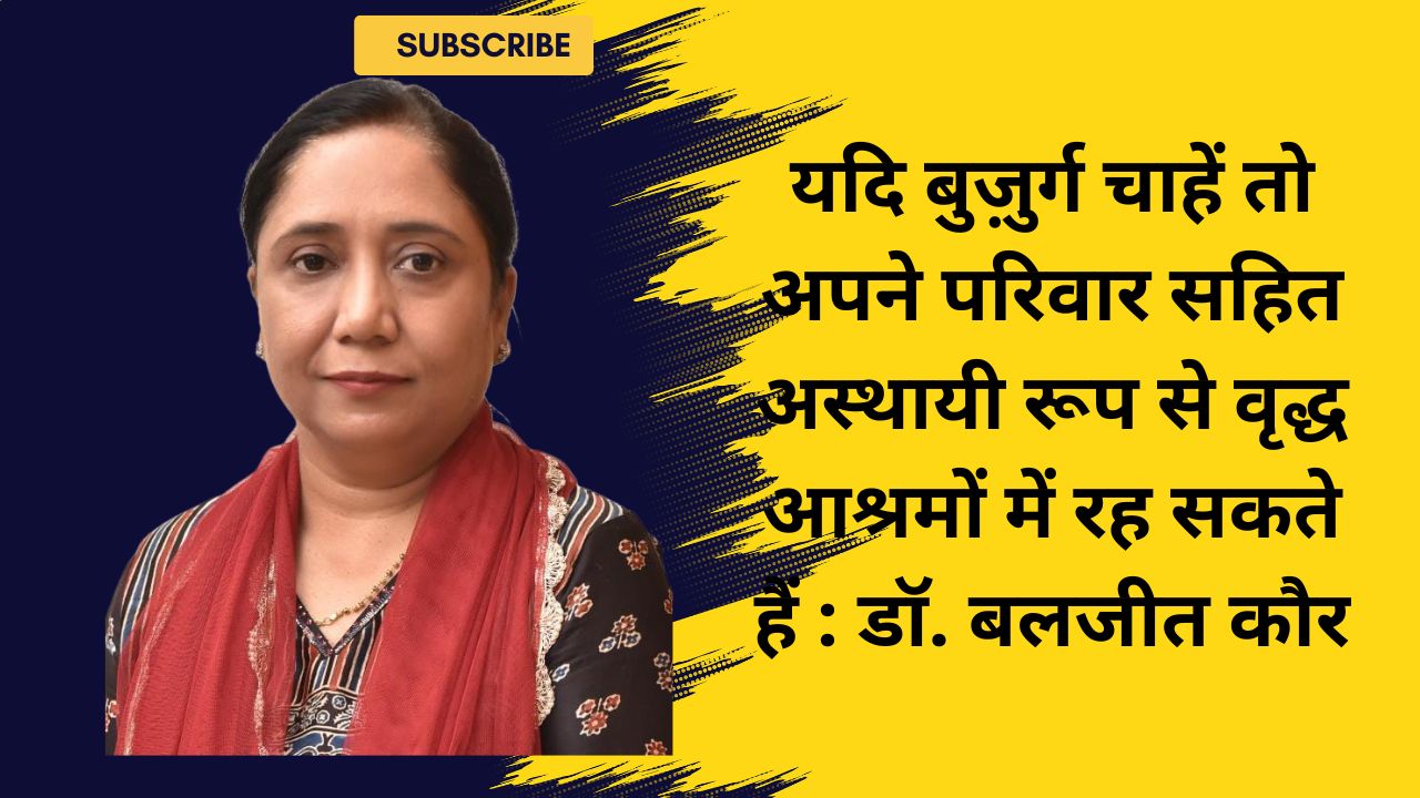 यदि बुज़ुर्ग चाहें तो अपने परिवार सहित अस्थायी रूप से वृद्ध आश्रमों में रह सकते हैं : डॉ. बलजीत कौर