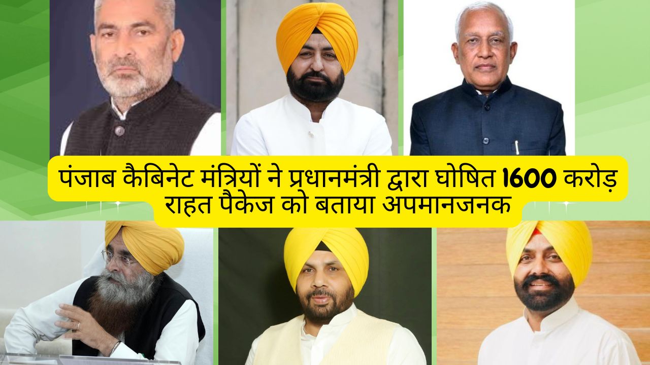 कैबिनेट मंत्रियों गुरमीत सिंह खुड्डियां, हरदीप सिंह मुंडियां, हरभजन सिंह ई.टी.ओ., बरिंदर कुमार गोयल, लाल चंद कटारूचक्क और लालजीत सिंह भुल्लर ने संयुक्त बयान जारी करते हुए कहा कि पंजाब ने अपने हालिया इतिहास की सबसे भयानक बाढ़ का सामना किया है, जिसने पूरे गांव डुबो दिए, घरों और फसलों को तबाह कर दिया तथा लाखों लोगों की आजीविका छीन ली। ऐसे समय में केंद्र सरकार का यह राहत पैकेज केवल दिखावा है।