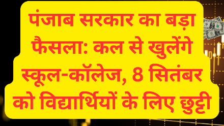 पंजाब सरकार का बड़ा फैसला: कल से खुलेंगे स्कूल-कॉलेज, 8 सितंबर को विद्यार्थियों के लिए छुट्टी