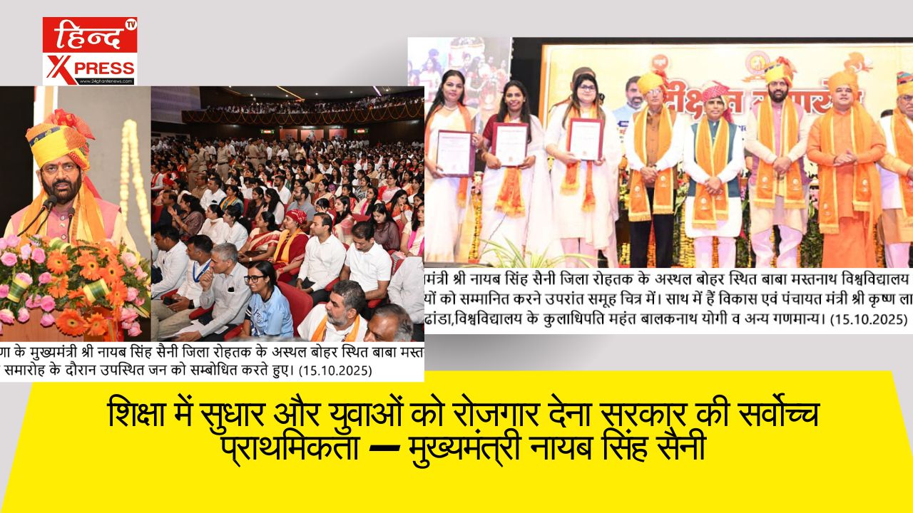 शिक्षा में सुधार और युवाओं को रोजगार देना सरकार की सर्वोच्च प्राथमिकता — मुख्यमंत्री नायब सिंह सैनी