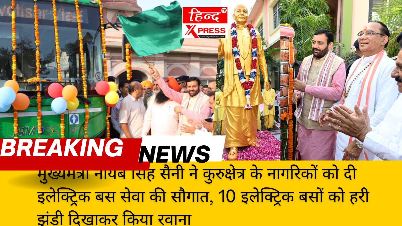 मुख्यमंत्री नायब सिंह सैनी ने कुरुक्षेत्र के नागरिकों को दी इलेक्ट्रिक बस सेवा की सौगात, 10 इलेक्ट्रिक बसों को हरी झंडी दिखाकर किया रवाना