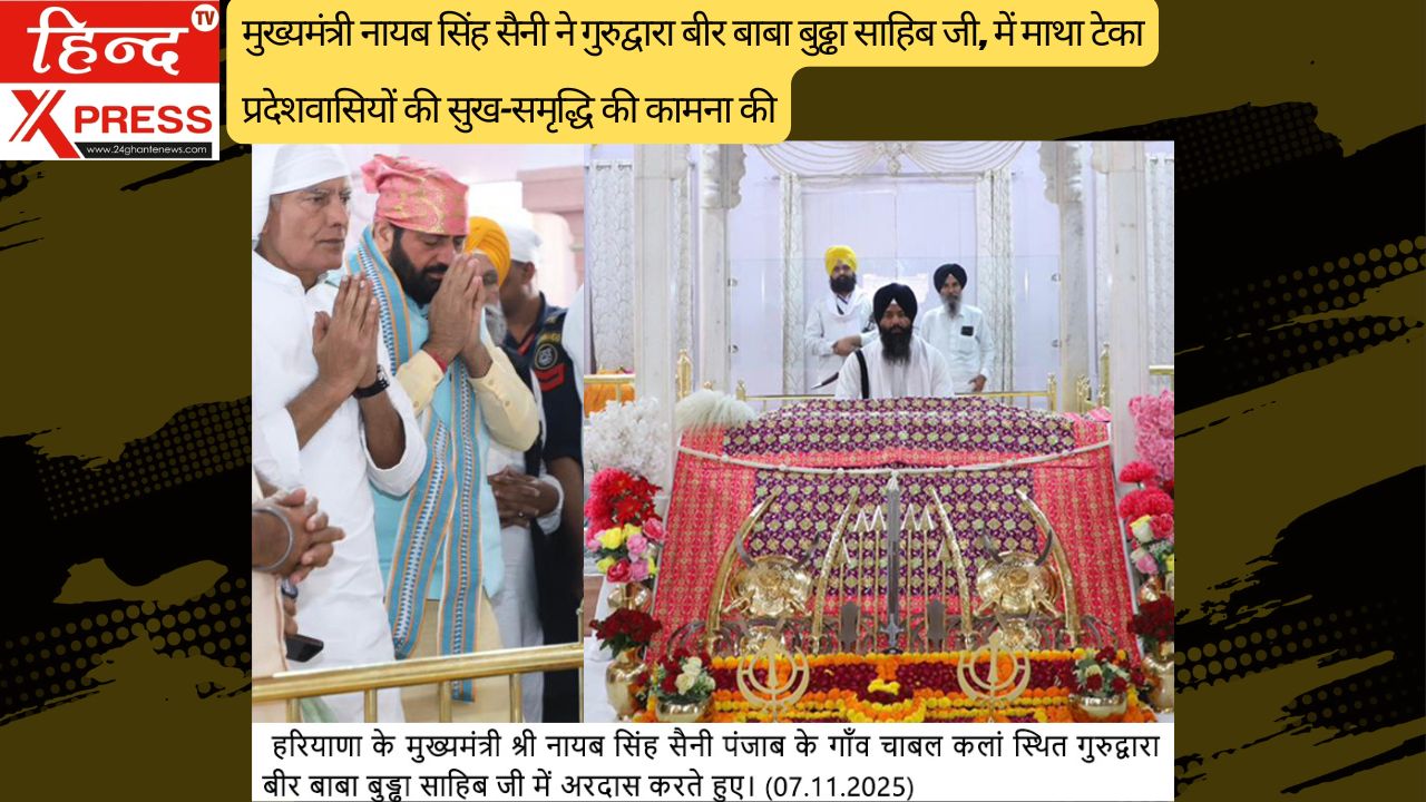 मुख्यमंत्री नायब सिंह सैनी ने गुरुद्वारा बीर बाबा बुढ्ढा साहिब जी, में माथा टेका