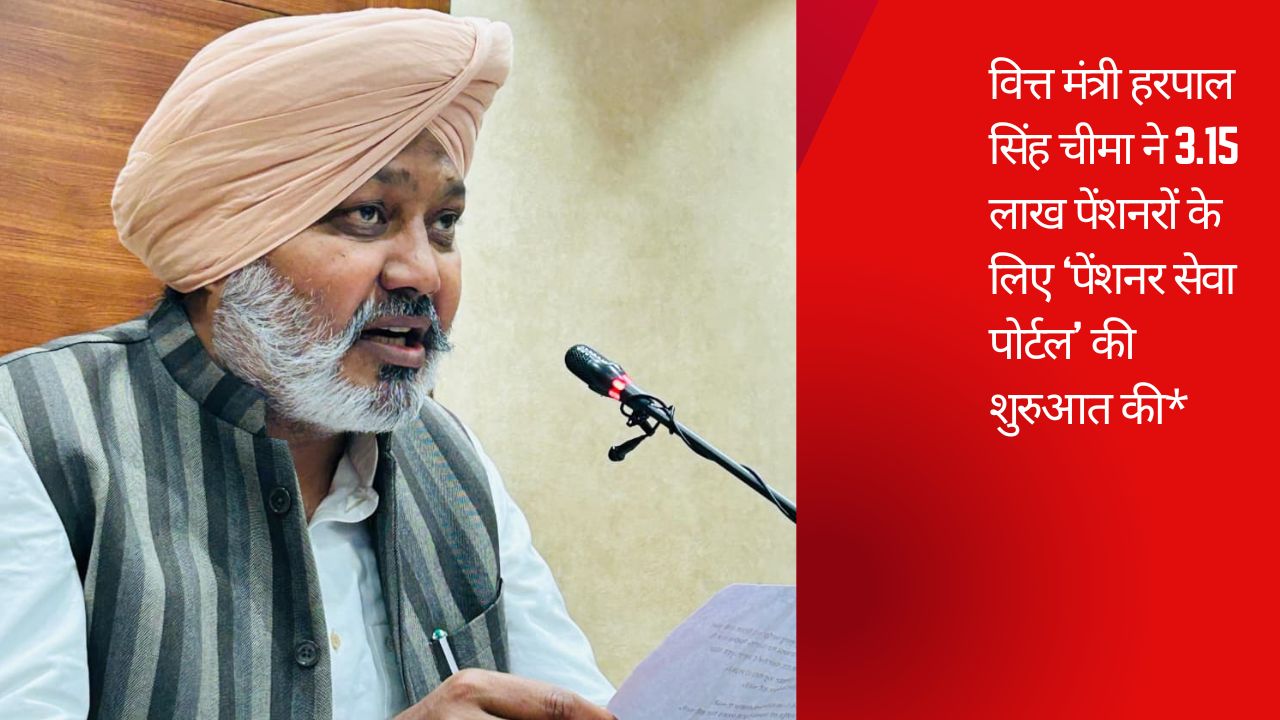 पंजाब के वित्त मंत्री एडवोकेट हरपाल सिंह चीमा ने आज राज्य के लगभग 3.15 लाख पेंशनरों के लिए पेंशन सेवाओं को अधिक सुचारू, सरल और पारदर्शी बनाने के उद्देश्य से तैयार किए गए ‘पेंशनर सेवा पोर्टल’ का शुभारंभ किया। इस पोर्टल, https://pensionersewa.punjab.gov.in। का उद्देश्य पेंशन वितरण मामलों की प्रक्रिया को स्वचालित बनाना और पेंशनरों व पारिवारिक पेंशनरों को विभिन्न ऑनलाइन सेवाएँ प्रदान करना है।