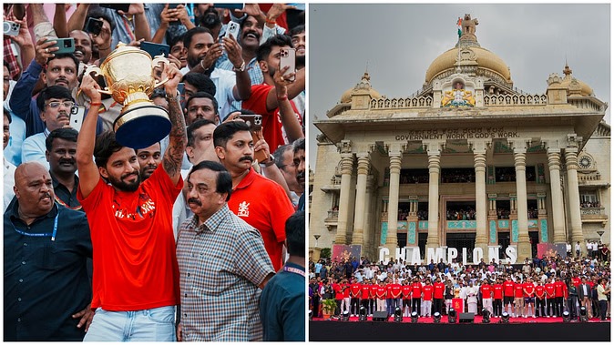दरअसल, आरसीबी ने 18वें सत्र में जाकर पहली बार आईपीएल का खिताब जीता। टीम बुधवार को अहमदाबाद से बंगलूरू पहुंची तो फैंस टीम की एक झलक पाने के लिए बेताब दिखे। खिलाड़ियों को विधान सौधा और चिन्नास्वामी स्टेडियम में सम्मानित किया जाना था। विधान सौधा में सम्मान कार्यक्रम के बाद खिलाड़ियों को विक्ट्री परेड करते हुए स्टेडियम पहुंचना था। हालांकि, फैंस की सुरक्षा के लिए कोई व्यवस्था नहीं की गई थी। विधान सौधा से लेकर चिन्नास्वामी स्टेडियम तक, लाखों की संख्या में फैंस मौजूद रहे। वह किसी भी तरह से स्टेडियम के अंदर जाने के लिए बेताब दिखे। वे पेड़, कार, बस, जो भी ऊंची चीज दिखी, उस पर चढ़ गए। इतना ही नहीं फैंस स्टेडियम की दीवार और फेंसिंग पर चढ़ते भी दिखे।