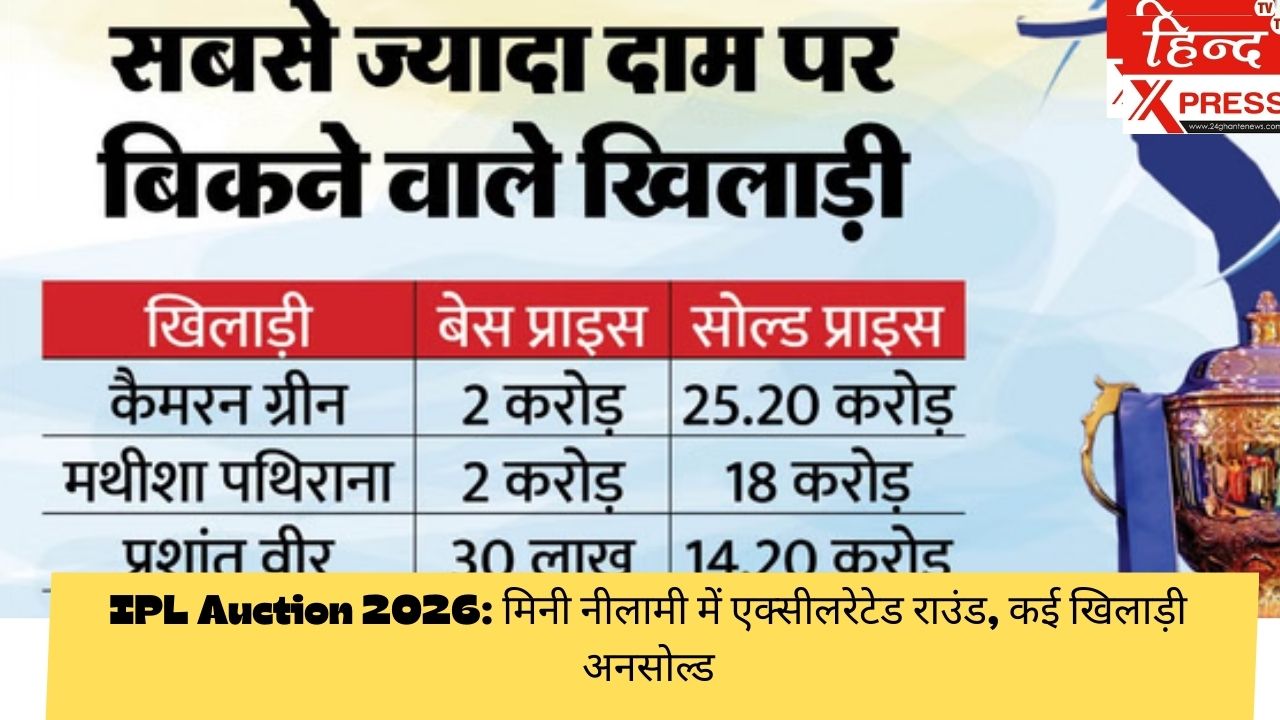 IPL Auction 2026: मिनी नीलामी में एक्सीलरेटेड राउंड, कई खिलाड़ी अनसोल्ड