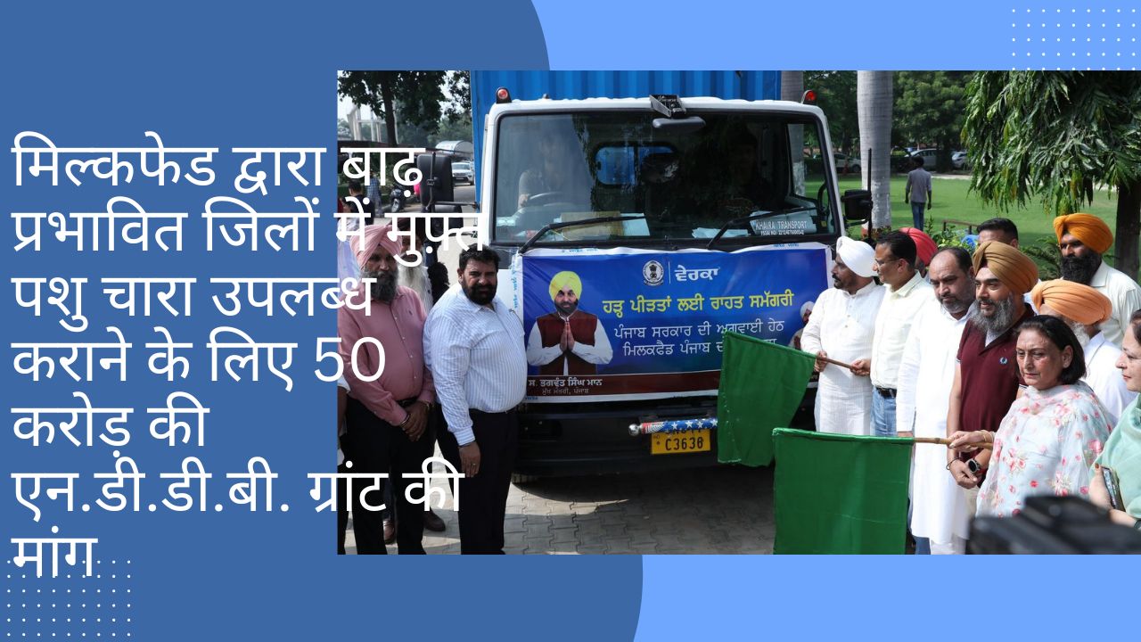 मिल्कफेड द्वारा बाढ़ प्रभावित जिलों में मुफ़्त पशु चारा उपलब्ध कराने के लिए 50 करोड़ की एन.डी.डी.बी. ग्रांट की मांग