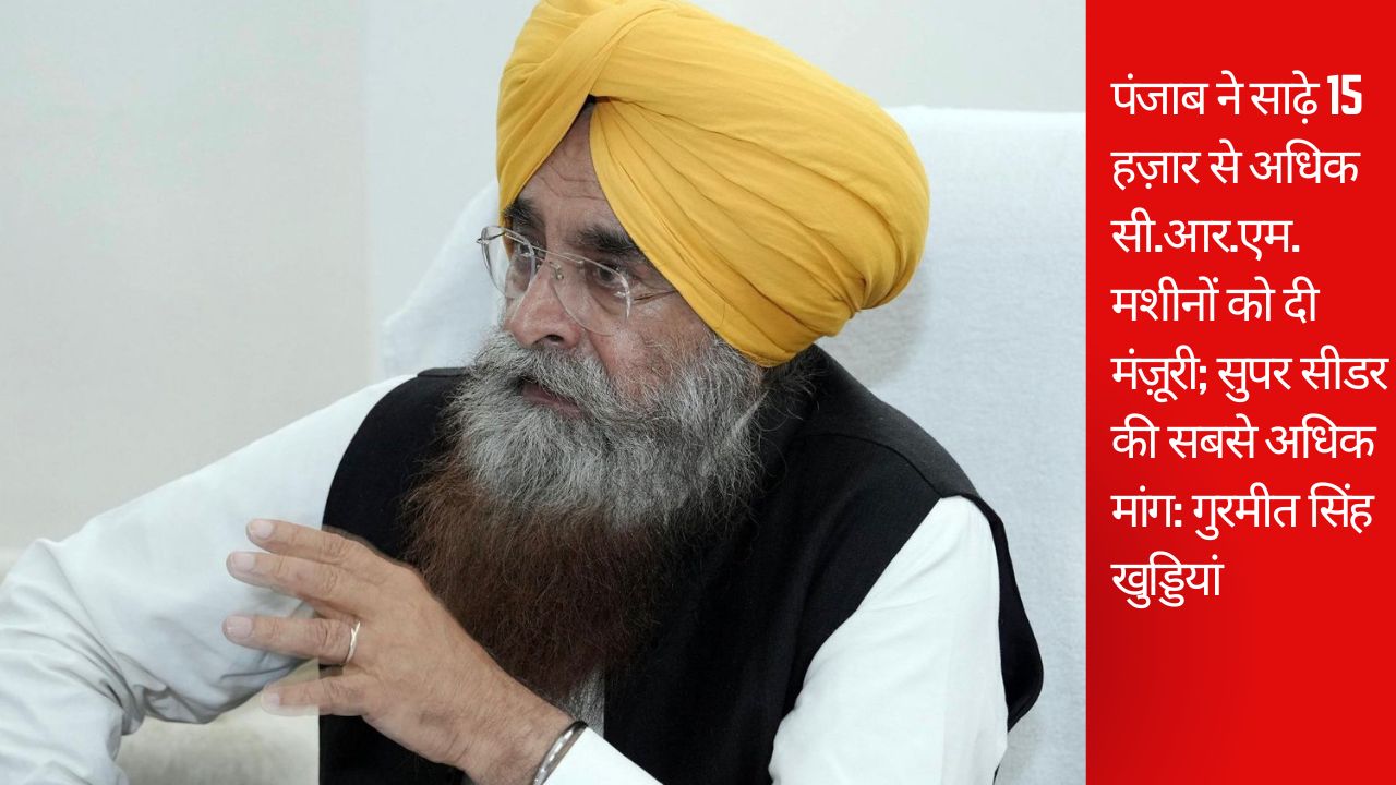स गुरमीत सिंह खुड्डियां ने कहा कि मंज़ूर की गई 15,613 सी.आर.एम. मशीनों में से लगभग 9,000 मशीनें किसानों द्वारा खरीदी भी जा चुकी हैं।