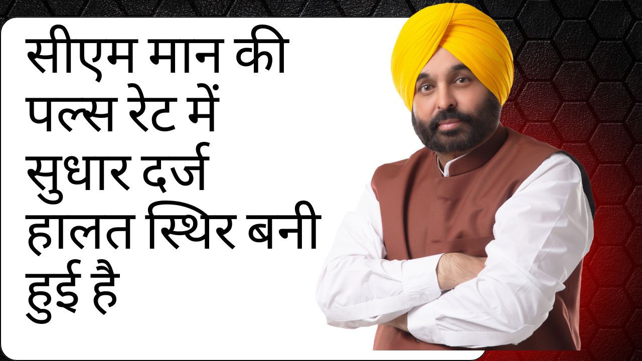 पंजाब के मुख्यमंत्री भगवंत मान की तबीयत को लेकर बड़ी जानकारी सामने आई है। डॉक्टरों के अनुसार सीएम मान की पल्स रेट में सुधार दर्ज किया गया है और उनकी हालत पूरी तरह स्थिर बनी हुई है। फिलहाल चिकित्सक लगातार उनकी सेहत पर नज़र बनाए हुए हैं।