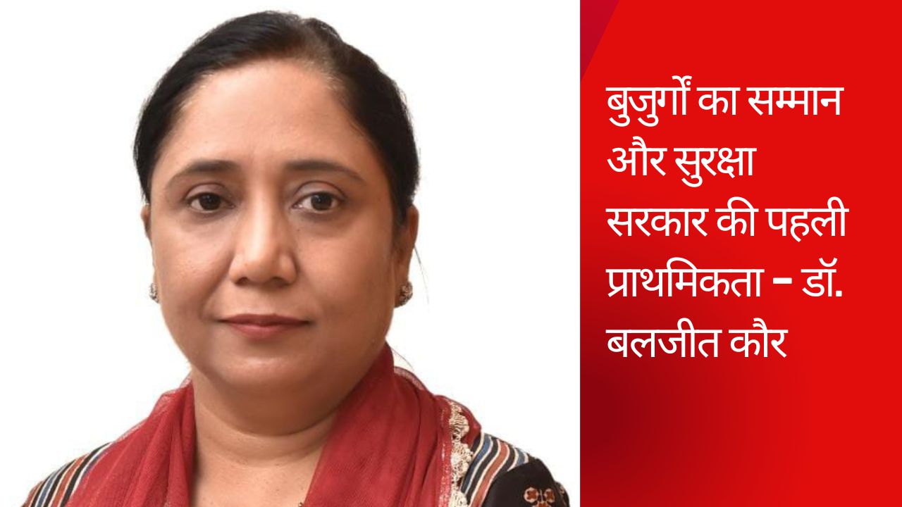 बुजुर्गों का सम्मान और सुरक्षा सरकार की पहली प्राथमिकता – डॉ. बलजीत कौर