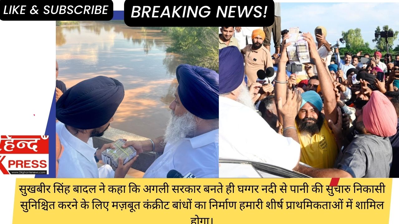 सुखबीर सिंह बादल ने कहा कि अगली सरकार बनते ही घग्गर नदी से पानी की सुचारु निकासी सुनिश्चित करने के लिए मज़बूत कंक्रीट बांधों का निर्माण हमारी शीर्ष प्राथमिकताओं में शामिल होगा।”