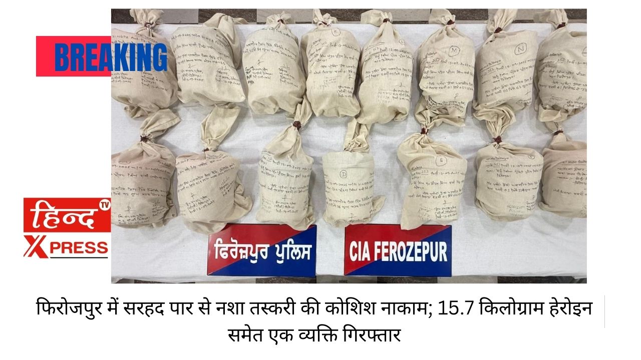 फिरोजपुर में सरहद पार से नशा तस्करी की कोशिश नाकाम; 15.7 किलोग्राम हेरोइन समेत एक व्यक्ति गिरफ्तार