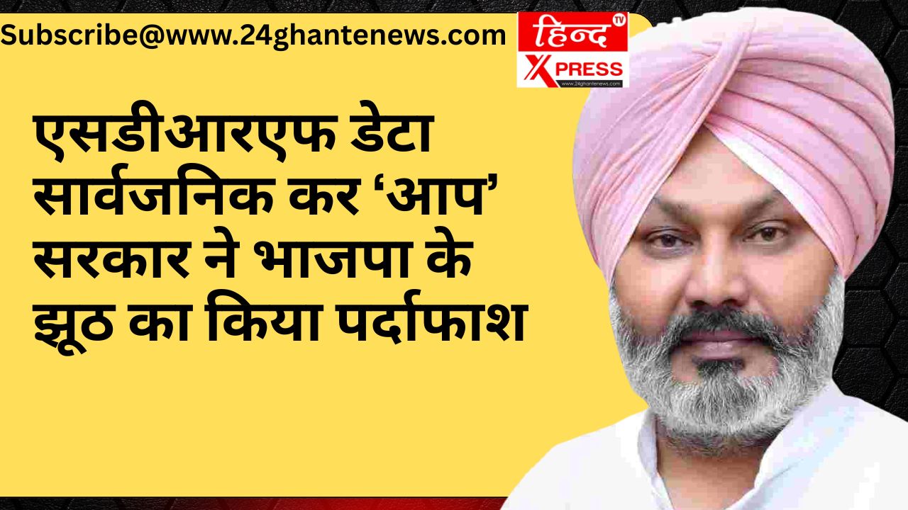पंजाब के कैबिनेट मंत्री हरपाल सिंह चीमा ने भाजपा नेताओं पर तीखा हमला बोला। उन्होंने कहा कि भाजपा पंजाब की जनता को गुमराह कर रही है और सच्चाई छिपाने की कोशिश कर रही है। चीमा ने कहा कि एसडीआरएफ फंड का हर एक रुपया पारदर्शी ढंग से खर्च किया जा रहा है और इसकी जानकारी पहले से ही सार्वजनिक डोमेन में उपलब्ध है।
